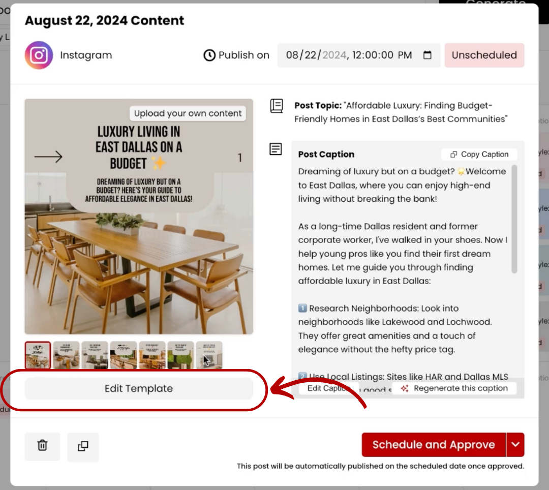 - Start by clicking on the “Edit Template” button within your carousel post.